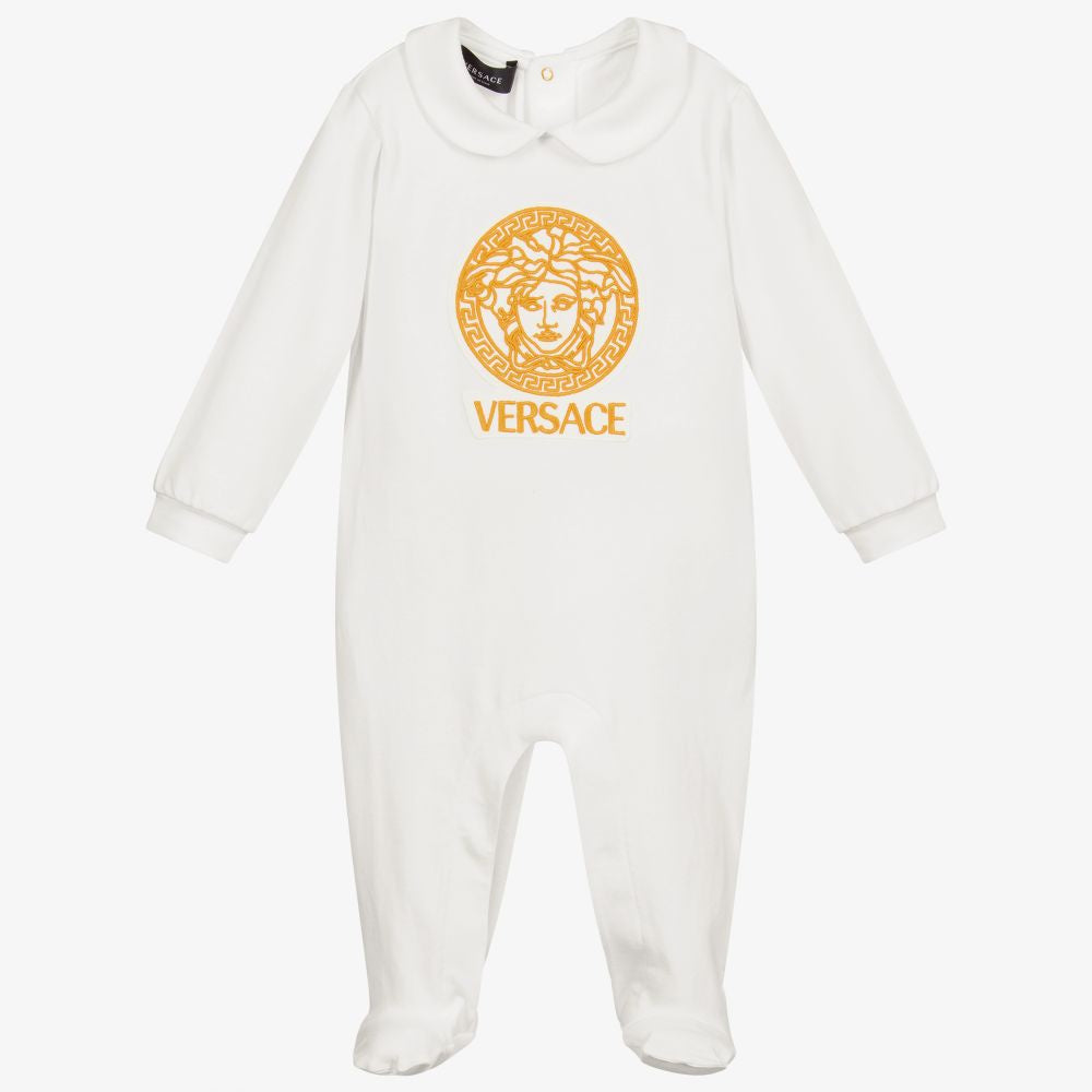 Crafted from soft cotton jersey, this plush babygrow is embellished with the Medusa and logo.