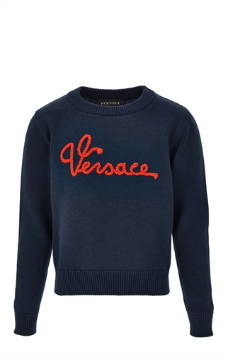 A cotton ribbed-knit sweater featuring an embroidered Versace Logo in a nautical rope design.