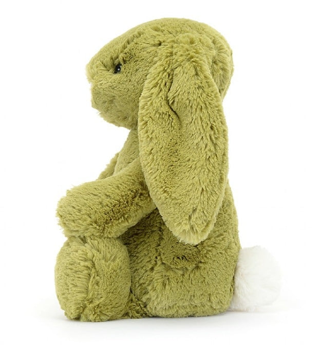 Bashful Moss Bunny is a bundle of hugs in rich pistachio green. A lop-eared friend with a soft tummy and a silky vanilla bobtail, this soft-pawed bunny really grows on you…