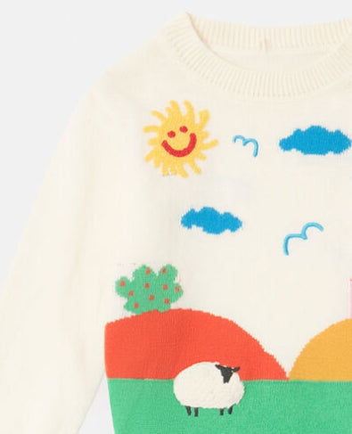 BABY GIRL SWEATER WITH LANDSCAPE INTARSIA