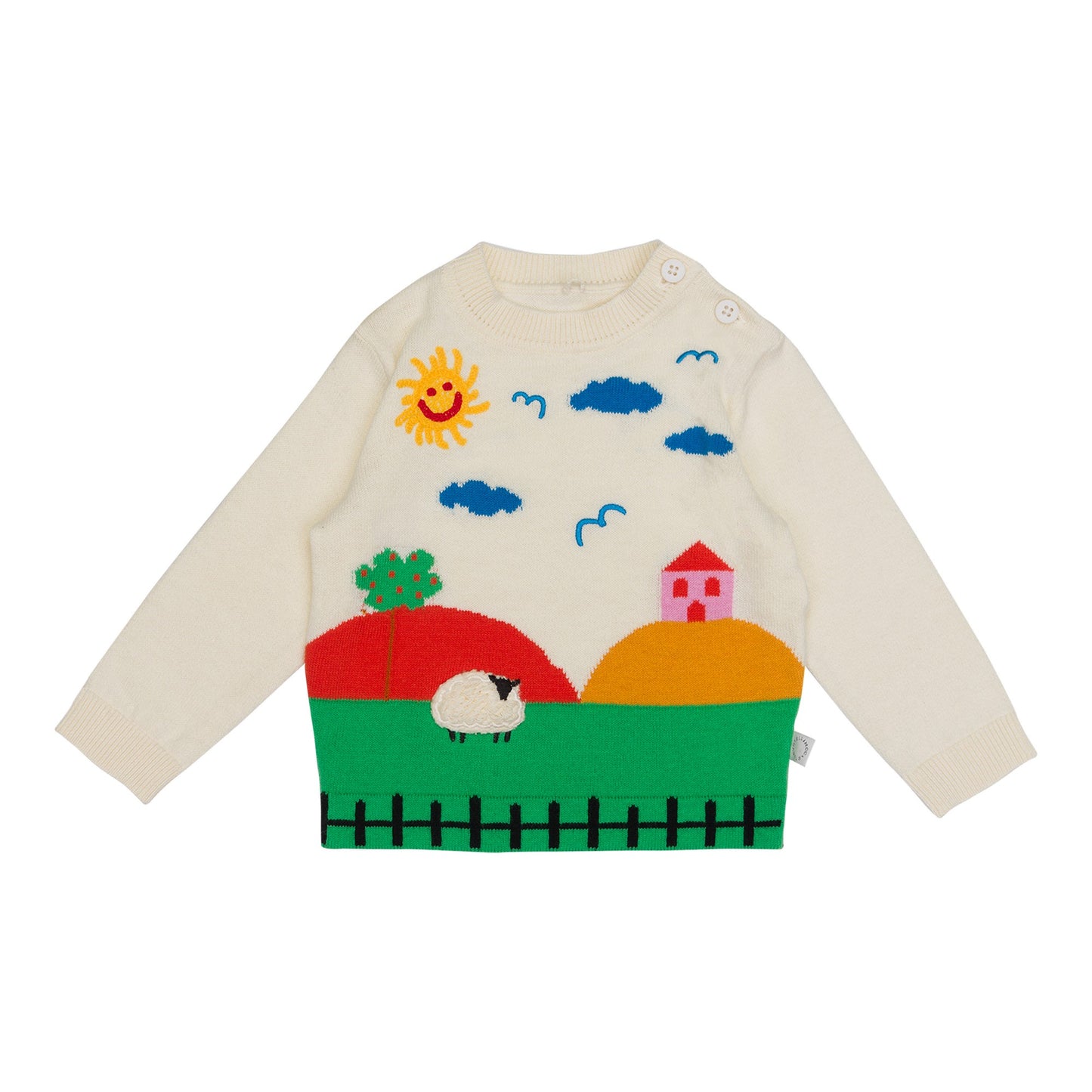 Inspired by Stella McCartney’s childhood in the countryside, this adorable jumper is suited to any adventure with your mini-me. Knitted from a soft blend of organic cotton and RWS-certified wool, it’s detailed with farmyard scenery stitched on the front.